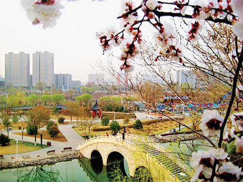 春日的人民公園,柳枝吐翠,杏花如雪,玉蘭絢麗,令游人陶醉。(王建民 攝)