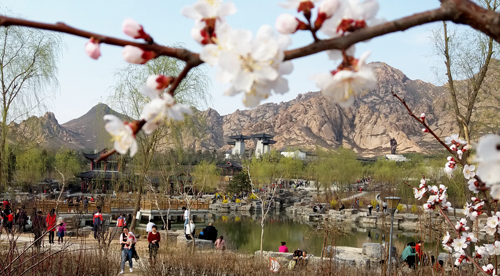 4月4日,游客在原平市天牙山風(fēng)景區(qū)踏青游園。清明小長假,該市各公園正值早春花卉盛花期,游客在此賞花觀景,感受春的氣息。(褚震 攝)