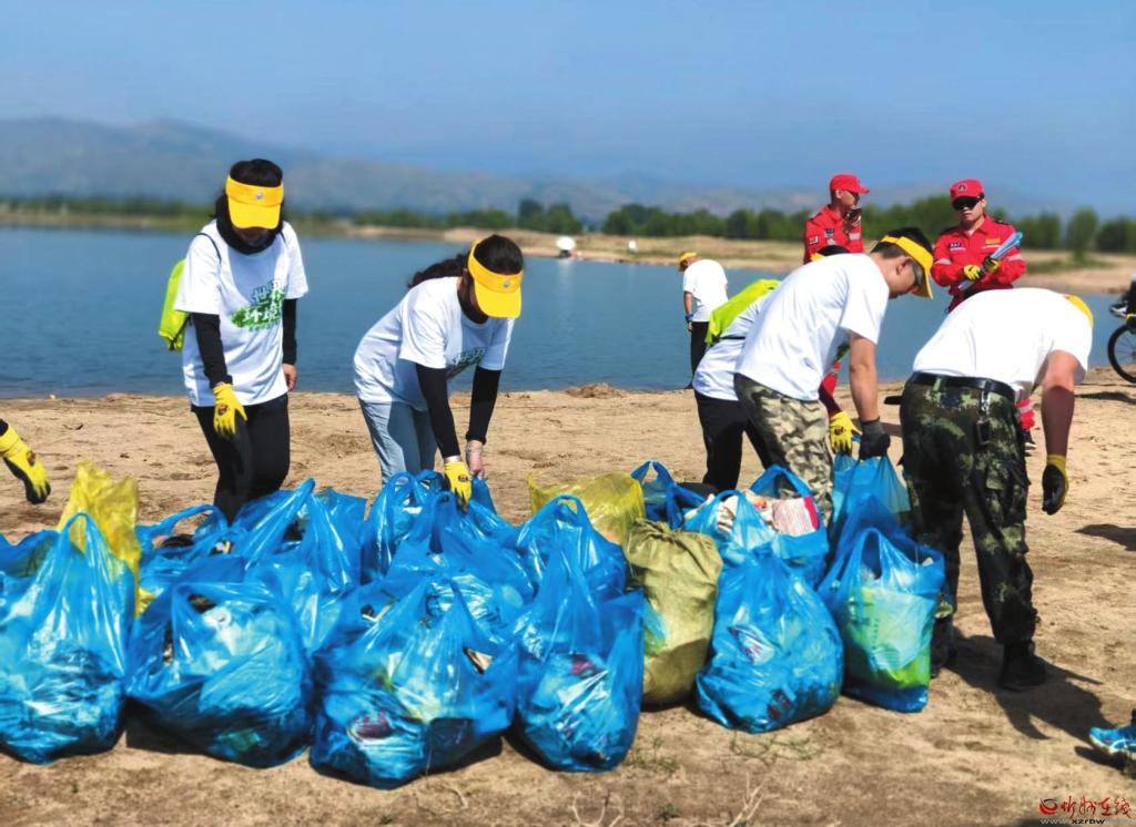 活動(dòng)開(kāi)始,志愿者們騎自行車從房車營(yíng)地出發(fā),沿云中河騎行道一路抵達(dá)奇村鎮(zhèn)雙乳湖風(fēng)景區(qū),在雙乳湖周邊開(kāi)展垃圾收撿志愿服務(wù)活動(dòng)。志愿者們兩兩一組,將塑料、玻璃、金屬等不易降解的垃圾分類收集,用木棍、繩索等工具打撈并分類收撿湖邊水里的塑料袋、魚(yú)網(wǎng)、塑料瓶等,向景區(qū)游客宣傳了“美麗中國(guó)我先行”的環(huán)境保護(hù)理念,號(hào)召大家用實(shí)際行動(dòng)踐行環(huán)境保護(hù)。活動(dòng)結(jié)束后,30余名志愿者騎行返回出發(fā)點(diǎn),以低碳環(huán)保的方式向沿途游客宣傳世界環(huán)境日生態(tài)保護(hù)理念。