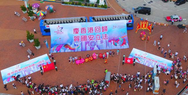 這也是《國(guó)歌條例》在香港刊憲生效后的第一個(gè)回歸慶祝日,全港一共有50多場(chǎng)奏唱國(guó)歌的活動(dòng)。除了在多個(gè)地標(biāo)奏唱,街頭也不時(shí)能聽到市民自發(fā)進(jìn)行的合唱“快閃”活動(dòng)。慶委會(huì)還舉辦電影《國(guó)歌》慶回歸特別專場(chǎng),電影開始前全場(chǎng)合唱國(guó)歌,氣氛熱烈。