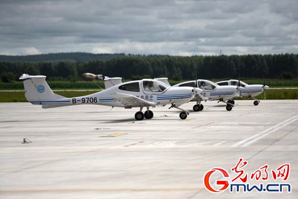 光明網(wǎng)訊(記者 趙艷艷 潘迪 李剛)“嘟嘟嘟……”在內(nèi)蒙古自治區(qū)扎蘭屯成吉思汗機(jī)場的跑道上,一架架訓(xùn)練機(jī)整齊劃一,蓄勢待發(fā)。沒幾分鐘,隨著飛行學(xué)員們熟練的操作,訓(xùn)練機(jī)機(jī)群直上云霄,在成吉思汗機(jī)場上空畫出一道道美麗的弧線。這些年輕的飛行學(xué)員們,來自中國民航大學(xué)內(nèi)蒙古飛行學(xué)院。