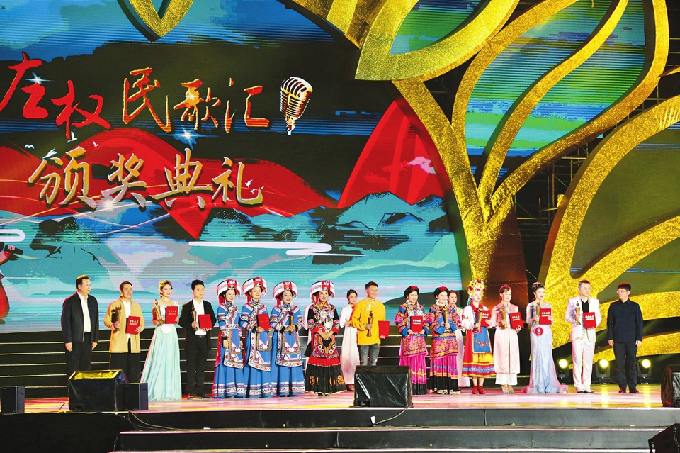 二○二○年左權(quán)民歌匯總決賽頒獎(jiǎng)典禮(銅尊獎(jiǎng))。史曼菲攝 本報(bào)訊(記者裴云鋒)以歌會(huì)友,向山而歌。9月5日晚,2020年左權(quán)民歌匯總決賽暨頒獎(jiǎng)晚會(huì)在左權(quán)縣蓮花巖景區(qū)圓滿落幕。進(jìn)入總決賽的8組選手,經(jīng)過巔峰對(duì)決,最終來自內(nèi)蒙古的選手敖特根圖婭成功問鼎今年左權(quán)民歌匯金尊獎(jiǎng)。受省委書記樓陽生委托,省委常委、秘書長(zhǎng)廉毅敏出席總決賽,為金尊獎(jiǎng)獲得者頒獎(jiǎng),并代表樓陽生書記向所有評(píng)委表達(dá)謝意。 參加總決賽的8強(qiáng)選手都是從全國(guó)3266組報(bào)名者中,經(jīng)過7場(chǎng)突圍賽、2場(chǎng)晉級(jí)賽產(chǎn)生的。除敖特根圖婭外,來自山東的袁慶和來自重慶的阿依山娃組合獲得銀尊獎(jiǎng);來自我省的馮麗媛、貴州的阿姿阿芭組合和諾麥組合、烏克蘭的安娜、海南的張澤艷,獲得了本次比賽的銅尊獎(jiǎng)。 當(dāng)晚,除了民歌選手的強(qiáng)強(qiáng)對(duì)決,各位評(píng)委也帶來了精彩的節(jié)目。歌手平安傾情演唱《人說山西好風(fēng)光》拉開了總決賽的序幕,王宏偉、陳思思、龔琳娜、關(guān)牧村等分別演唱了《西部放歌》《青藏高原》等歌曲。左權(quán)民歌“活化石”劉改魚和“羊倌歌王”石占明攜手左權(quán)青年歌手帶來民歌串聯(lián)大秀《幸福開花調(diào)》,歌唱老區(qū)開拓創(chuàng)新的精神。最后,晚會(huì)在閻維文的《我們的祖國(guó)歌甜花香》中落下帷幕。 舉辦左權(quán)民歌匯是深入貫徹落實(shí)省委決策部署,打造文旅融合新品牌,實(shí)現(xiàn)全面小康的有益探索和實(shí)踐。去年,“首屆左權(quán)民歌匯”成功舉辦。今年,晉中市繼續(xù)擴(kuò)大左權(quán)民歌匯影響力,以品牌化打造助推左權(quán)乘著民歌的翅膀大步邁進(jìn)全面小康。民歌匯期間,左權(quán)縣還舉辦了“從左權(quán)出發(fā)”產(chǎn)業(yè)推介會(huì)和太行區(qū)域非遺民俗產(chǎn)品左權(quán)博覽會(huì)、廉政歌曲展演、民間文藝匯演、扶貧集市、民歌大師課堂、開辦“民星”培訓(xùn)班等一系列活動(dòng)。同時(shí),該縣集中簽約新能源文化旅游、能源開發(fā)、中藥材種植及加工等項(xiàng)目15個(gè),總投資超200億元,為左權(quán)高質(zhì)量發(fā)展注入了強(qiáng)勁動(dòng)能。此外,左權(quán)縣還與相鄰的河北省邢臺(tái)市信都區(qū)、武安市、涉縣、安國(guó)市四縣(區(qū)、市)舉行“太行山友好縣份協(xié)同發(fā)展”座談會(huì),積極推進(jìn)“五地”區(qū)域協(xié)同發(fā)展,構(gòu)建“太行紅三角協(xié)作發(fā)展區(qū)”。 民歌匯的舉辦,不僅帶火了左權(quán)民歌匯的舞臺(tái)和品牌,還直接帶動(dòng)左權(quán)文旅產(chǎn)業(yè)的雙向開發(fā),夯實(shí)了左權(quán)脫貧攻堅(jiān)產(chǎn)業(yè)硬支撐,助力老區(qū)人民“唱著民歌奔小康”。 (責(zé)任編輯:盧相汀) |