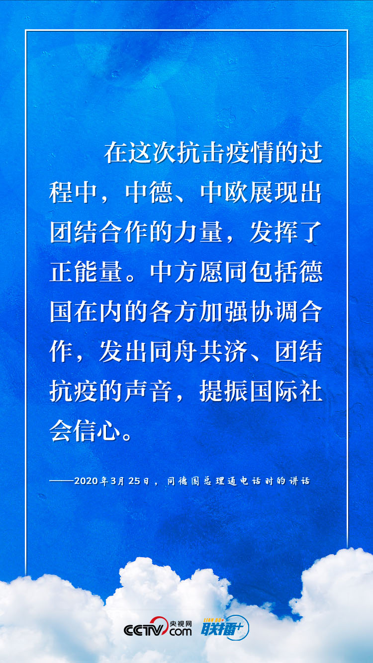 新冠肺炎疫情暴發(fā)以來,中國和德國、歐盟相互支持、相互幫助。習近平主席多次與德歐領(lǐng)導(dǎo)人開展“云外交”,闡明加強合作的重要性。