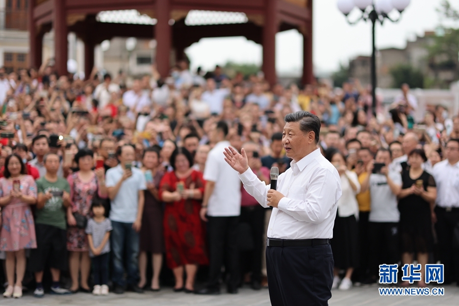 當(dāng)?shù)厝罕姾陀慰蛡円姷娇倳泚砹?,爭相圍攏上來向總書記問好。習(xí)近平祝大家生活愉快、健康幸福。他指出,我國改革開放和經(jīng)濟(jì)特區(qū)的建設(shè)同大批心系鄉(xiāng)梓、心系祖國的華僑是分不開的。我們即將全面建成小康社會(huì)、開啟全面建設(shè)社會(huì)主義現(xiàn)代化國家新征程,向第二個(gè)百年奮斗目標(biāo)進(jìn)軍。到本世紀(jì)中葉把我國建成富強(qiáng)民主文明和諧美麗的社會(huì)主義現(xiàn)代化強(qiáng)國,是海內(nèi)外全體中華兒女的共同心愿。今年是經(jīng)濟(jì)特區(qū)建立40周年,我特地來汕頭經(jīng)濟(jì)特區(qū)考察調(diào)研,就是要向國內(nèi)外宣示,中國共產(chǎn)黨領(lǐng)導(dǎo)中國人民將堅(jiān)定不移走改革開放道路,奮發(fā)有為推進(jìn)社會(huì)主義現(xiàn)代化建設(shè),鍥而不舍實(shí)現(xiàn)中華民族偉大復(fù)興的中國夢(mèng)。希望鄉(xiāng)親們攜手努力,共同奮斗!