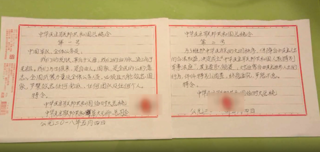 “中華民主聯(lián)邦共和國(guó)總統(tǒng)令第一號(hào)”