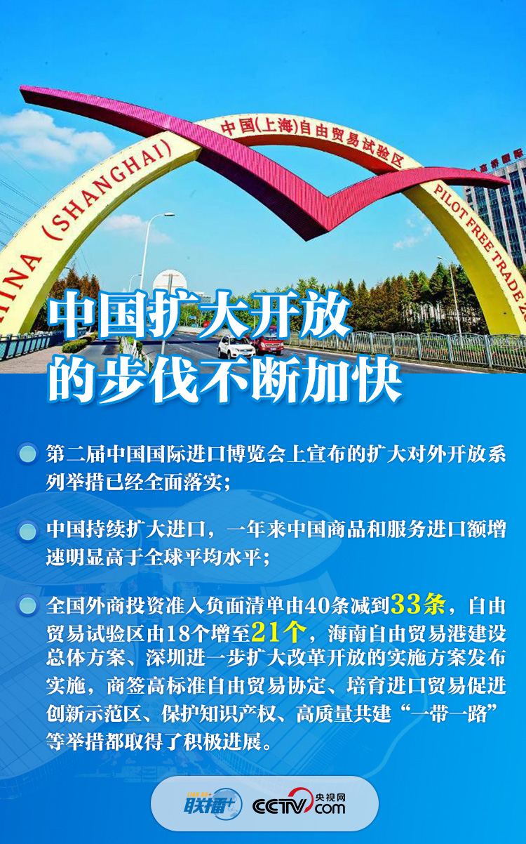 “各國(guó)企業(yè)參展踴躍,展覽面積又?jǐn)U大了近3萬(wàn)平方米”,“全國(guó)外商投資準(zhǔn)入負(fù)面清單由40條減到33條,自由貿(mào)易試驗(yàn)區(qū)由18個(gè)增至21個(gè)”,“中國(guó)有14億人口,中等收入群體超過(guò)4億,是全球最具潛力的大市場(chǎng)”......一組組數(shù)字振奮人心,體現(xiàn)了中國(guó)邀請(qǐng)各方“聚進(jìn)博、享機(jī)遇”、推動(dòng)世界經(jīng)濟(jì)復(fù)蘇的真誠(chéng)愿望,展現(xiàn)了中國(guó)在大疫面前與各國(guó)“共天地、同風(fēng)雨”的大國(guó)擔(dān)當(dāng)。