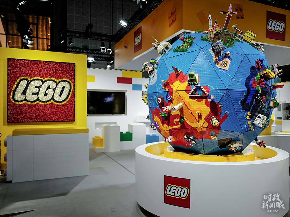 △這是進(jìn)博會消費(fèi)品展區(qū)的“樂造星球”展品,高2.7米(含底座),共包含62750塊樂高積木顆粒,顆??傊亓窟_(dá)106千克。(總臺國廣記者李晉拍攝)