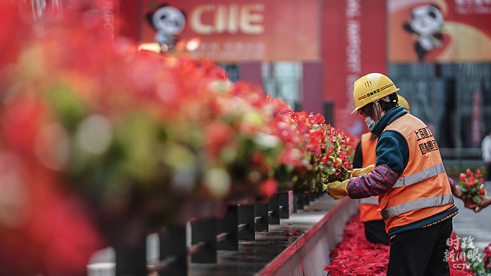 △進(jìn)博會開幕前,工作人員做最后的整理、布展等工作。(總臺國廣記者李晉拍攝)