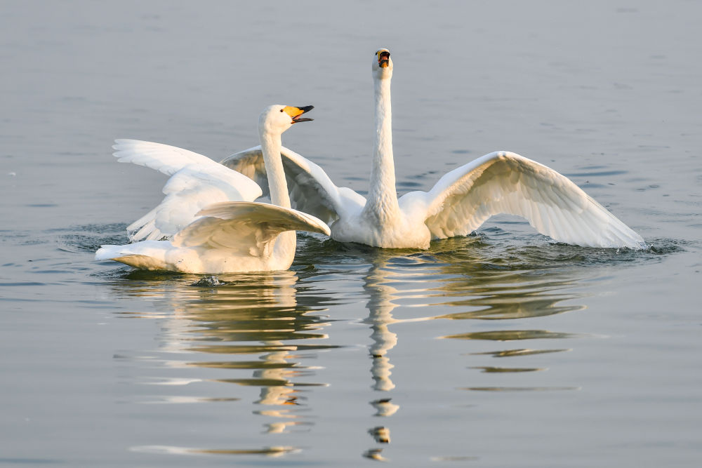 在山西平陸黃河濕地保護區(qū),一批批來自西伯利亞的野生大天鵝陸續(xù)飛抵,開始越冬。據(jù)悉,自10月底起,大天鵝已開始分批抵達黃河濕地,進入12月后數(shù)量明顯增加,目前該區(qū)域觀測到的越冬天鵝已超5000只,到明年1、2月份可達上萬只。它們悠然自得的身影,為黃河岸畔增添了一道靈動的風景線。