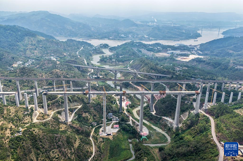 這是9月1日拍攝的渝萬高鐵蔡家溝雙線特大橋建設(shè)現(xiàn)場(chǎng)(無人機(jī)照片)。(新華社發(fā) 孫鵬 攝)
