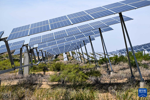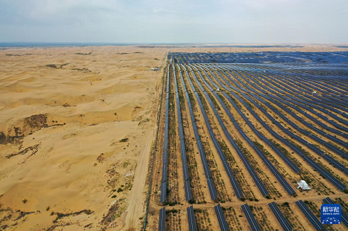 內(nèi)蒙古鄂爾多斯市達拉特旗境內(nèi)的庫布其沙漠里,一塊塊藍色光伏板鱗次櫛比、鋪陳排開,將沙海變成綠能涌動的“藍海”。近年來,達拉特旗依托光伏基地建設(shè),推廣應(yīng)用“光伏治沙”模式,實現(xiàn)光伏板上發(fā)綠電,板下治理沙漠生態(tài),既帶動新能源產(chǎn)業(yè)發(fā)展,也促進庫布其沙漠治理。