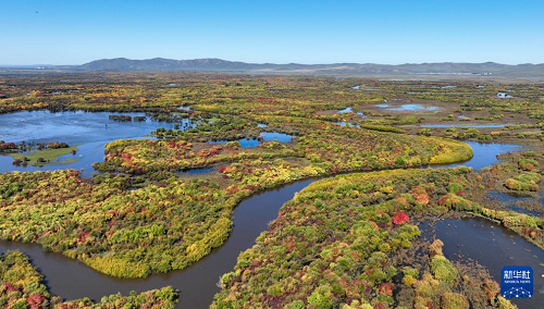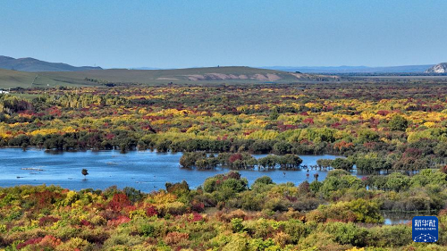 時(shí)下,內(nèi)蒙古額爾古納濕地迎來(lái)秋日盛景,多彩的灌木叢點(diǎn)綴其間,蜿蜒的河流如藍(lán)絲帶般靜靜流淌,宛若大自然打翻的調(diào)色盤(pán)。