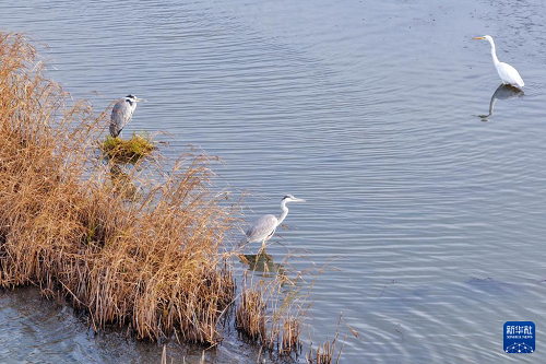 10月14日在黑龍江省同江市三江口國家濕地公園拍攝蒼鷺和白鷺。(新華社發(fā) 劉萬平 攝)