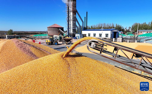 10月23日在北大荒集團黑龍江尾山農(nóng)場有限公司一烘干企業(yè)拍攝的玉米烘干作業(yè)現(xiàn)場(無人機照片)。(新華社發(fā) 陸文祥 攝)