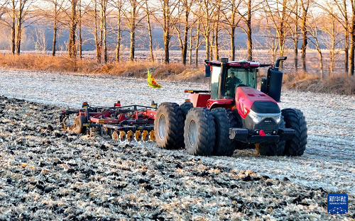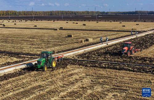 10月23日,農(nóng)機在黑龍江北大荒農(nóng)業(yè)股份友誼分公司田間進(jìn)行整地作業(yè) (無人機照片)。(新華社發(fā) 徐宏宇 攝)