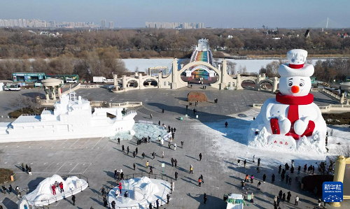 12月9日在哈爾濱太陽島風景區(qū)拍攝的“雪人先生”(無人機照片)。(新華社發(fā) 劉洋 攝)