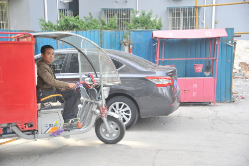 受訪者杜新軍。呂春榮 攝 一年365天,快遞員們天天都奔波在城市的各個角落,“5+2”、“白加黑”已成了他們中大多數人的工作常態(tài)。 剛加入快遞行業(yè)不久、今年25歲的甘肅小伙杜新軍也早已熟悉當前的工作節(jié)奏,8個月前,杜新軍選擇離開酒店行業(yè),從一名服務員轉型成為北京天天快遞的快遞員。 一般而言,快遞員每天的工作時間都在10小時以上,從來沒有“標準工作時間”的概念。遇上“雙11”等網購高峰期,他們還要通宵工作?!案?、更忙”,這是杜新軍對當前工作的感受。 “以前當服務員還有個周末、節(jié)假日,現在統統沒有了??紤]到能多掙點錢,我倒是能忍受,但女朋友不太樂意,常常抱怨我不能陪她逛街?!倍判萝姳硎?,看著其他情侶周末一起看電影、逛街,自己也心生羨慕,覺得對女友有虧欠,但想想還要努力掙錢,也就想開了。 如今,杜新軍每天配送一百多個快遞,日均收入一百多元,加上基本工資,他一個月工資能達到5千多元。 “雖然我工資不高,但生活比較節(jié)儉,除去一般生活費用,每個月我還能存下一筆錢。”杜新軍笑著說,“至于未來,我就想著再干一階段快遞,然后去女友的老家買套房子,和她結婚生子,到時養(yǎng)她一輩子?!?/p> “會受委屈,1個投訴可能讓幾十個快遞白跑”