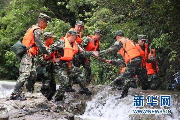 5月29日,武警官兵在事發(fā)河段附近搜救失蹤人員。當(dāng)日,廣東省江門市所轄臺(tái)山市人民政府披露,28日發(fā)生的臺(tái)山市端芬鎮(zhèn)鳳凰峽旅游區(qū)游客漂流遇山洪落水事故中,死亡人數(shù)升至8人,其中7人身份已經(jīng)確定。新華社發(fā)(王東震 攝)