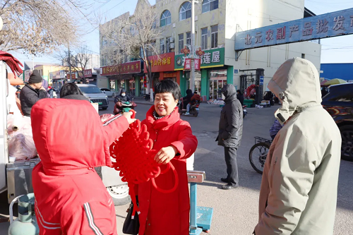正在購置年貨的河曲法院調解員王永梅在回家路上,正好碰到帶著一家老小置辦年貨的大明。大明女兒毛毛一眼認出了王永梅。