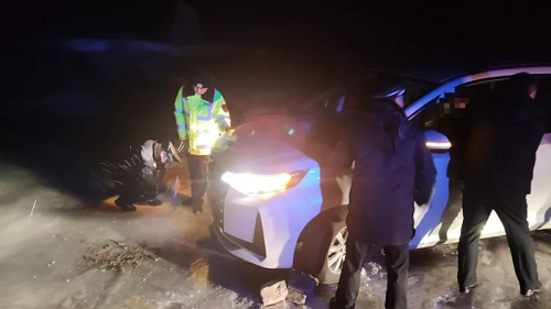 2025年2月17日22時許,繁峙縣公安局神堂堡派出所接到110指令稱,廣西籍游客張某開車行至神堂堡蓮花崖大峽谷路段時,車輛不慎滑到路邊一處冰面斜坡路段,情況危急,請求救援。