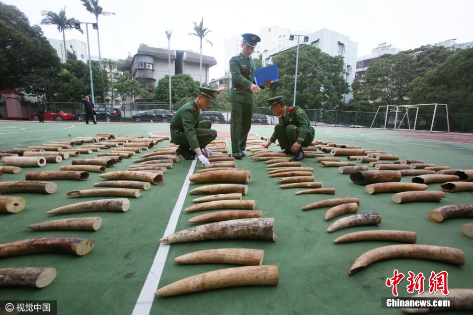 3月21日,廣東公安邊防總隊(duì)正式對(duì)外通報(bào)稱,珠海市邊防支隊(duì)成功破獲一起特大涉嫌走私象牙案,查獲走私象牙221塊,共計(jì)約450千克,市值1800萬(wàn)元人民幣,這是近年來(lái)全國(guó)邊防部門查獲的最大宗走私象牙案。圖片來(lái)源:視覺(jué)中國(guó)