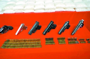 繳獲的作案手槍。 廣東邊防摧毀毒販“CC”計(jì)劃 偵破特大走私毒品案 繳獲毒品717公斤、槍支9支、豪車11輛、人民幣150萬元 一個(gè)神秘計(jì)劃暗藏驚天秘密,攪動(dòng)著邊防偵查員神經(jīng);一段跌宕起伏的潛伏偵查戲,上演真人版速度與激情;一次前所未有的緝毒閃電戰(zhàn),阻斷毒品出境海上通道……昨日上午,廣東省公安廳召開新聞發(fā)布會(huì)通報(bào)一起特大走私毒品案:今年2月28日,在公安部邊防管理局和省公安廳領(lǐng)導(dǎo)指揮下,廣東省公安邊防總隊(duì)聯(lián)合東莞市公安局在東莞、惠州、佛山等地同時(shí)收網(wǎng),破獲“1·26”特大走私毒品案,搗毀了一個(gè)企圖武裝走私販賣毒品出境的特大犯罪團(tuán)伙,共抓獲犯罪嫌疑人28名(其中中國臺(tái)灣籍犯罪嫌疑人15名),繳獲冰毒約717公斤,手槍9支,子彈349發(fā),毒資現(xiàn)金人民幣150萬元、港幣200萬元及銀行卡若干,以及奔馳AMG、奧迪Q7、寶馬5系等作案車輛11輛。 記者 張丹羊 邱偉榮 通訊員 陳思映 張嘉琦 線索: 金主毒販接頭密謀“CC”計(jì)劃 2015年12月22日,廣東省公安邊防總隊(duì)偵查隊(duì)突然接到一條來自福建省公安邊防總隊(duì)的線索。線索顯示,一個(gè)境內(nèi)外互相勾結(jié)的販毒集團(tuán)正在密謀一個(gè)代號(hào)為“CC”的行動(dòng)計(jì)劃,企圖從廣東秘密籌措一批毒品出境,“金主”(毒品投資人)林某來自中國臺(tái)灣,60多歲,道上綽號(hào)“元三”,與其里應(yīng)外合的神秘人物,極有可能就是去年粵閩邊防警方聯(lián)合偵破的一起武裝販毒案中的漏網(wǎng)之魚——代號(hào)“187”——這是當(dāng)時(shí)辦案人員根據(jù)掌握到的僅有的手機(jī)線索,給他取的代號(hào)。 經(jīng)偵查,偵查員發(fā)現(xiàn),元三入境以后七成以上均落腳在東莞市黃江鎮(zhèn)某五星級(jí)酒店。據(jù)此,上級(jí)公安機(jī)關(guān)指令廣東省公安邊防總隊(duì)偵查隊(duì)聯(lián)合東莞市公安邊防支隊(duì)偵查隊(duì)組成專案組共同偵辦此案,由邊防總隊(duì)業(yè)務(wù)部門和東莞市公安局、邊防支隊(duì)領(lǐng)導(dǎo)成立聯(lián)合指揮部??墒牵癈C”行動(dòng)具體是什么計(jì)劃?“CC”是地名還是人名?是英文縮寫還是拼音縮寫?或是暗語?專案組成立伊始,第一次案情分析會(huì)上,圍繞“CC”是什么的話題首先成為最熱烈的討論話題。 沉寂半個(gè)月后,“金主”元三被偵查發(fā)現(xiàn)以商人身份從中山市入境廣東,落腳點(diǎn)還是東莞市黃江鎮(zhèn)某五星級(jí)酒店。專案組派出偵查員對酒店內(nèi)外進(jìn)行監(jiān)視。就在當(dāng)晚零時(shí)左右,一輛黑色奔馳AMG豪華轎車停在酒店停車場,一名中等身材、稍微謝頂、有點(diǎn)駝背的神秘男子從駕駛座下車走進(jìn)酒店,車后座還有一個(gè)“黑影”叼著煙正在看手機(jī),此人寸頭發(fā)型、體態(tài)肥碩,但身份不明。半個(gè)小時(shí)過去,神秘男子一人從元三房間出來,開車離開。 辦案民警透露,元三入境多日既不走親訪友,也不參加任何商務(wù)活動(dòng),每天深居簡出,其間除了第一夜的神秘男子以外,無人來訪。相比之下,黑色奔馳AMG轎車上的兩個(gè)人活躍許多,他們常??梢砸惶熘畠?nèi)輾轉(zhuǎn)廣州、佛山、中山、東莞、惠州等地,或喝茶會(huì)友,或聚賭打牌,甚至聚眾“溜冰”。專案組根據(jù)偵查員拍到的相片展開調(diào)查,確認(rèn)了密會(huì)元三的神秘男子正是線索中所指的代號(hào)“187”,有境外犯罪記錄,據(jù)說“能搞到槍”。至于肥碩“黑影”的身份,專案組暫無定論,但這兩人經(jīng)常同時(shí)出現(xiàn),肯定“有料”。 偵查員發(fā)現(xiàn)這兩人較為固定的據(jù)點(diǎn),一個(gè)是位于東莞市厚街鎮(zhèn)的某檳榔店,一個(gè)是位于東莞市南城區(qū)一家名叫“天天”的快遞公司。檳榔店是一幫人打麻將聚賭的場所,倒是“天天”快遞公司引起了專案組極大興趣。這個(gè)“天天”快遞公司地處偏僻,與東莞市環(huán)城高速擦邊而過,周圍住宅、商鋪少。蹊蹺的是,這家快遞公司長期不見一筆快遞寄送業(yè)務(wù),卻幾乎每日豪車出入,少則兩三輛,多則五六輛,且每次公司的卷閘門都只是虛掩迎客,外人難以接近,當(dāng)然也觀察不到里面的情況。種種不合常理的跡象讓專案組斷定,這家快遞公司絕對是個(gè)掛羊頭賣狗肉的皮包公司。 偵查: 藏身雞舍監(jiān)視 高速公路追蹤 蹊蹺的“天天”快遞公司,成了專案組尋找突破的突破口。由于周邊地形空曠,同時(shí)架設(shè)在快遞公司門口左右兩個(gè)監(jiān)控?cái)z像頭直掃路面,虎視眈眈,有時(shí)還有一輛疑似把風(fēng)的車子停在路邊。面對“天天”快遞公司易守難攻的情況,專案組為了防止暴露,派出偵查員輪流潛伏快遞公司附近,密切監(jiān)視那里的一舉一動(dòng)。“不排除小區(qū)里還有他們的眼線。”專案組稱,他們選擇在小區(qū)圍欄內(nèi)側(cè)一處高地找到最佳觀察位置。那里是一個(gè)雞舍,雞舍用一塊廣告板擋雨,偵查員正是利用這塊廣告板作為掩體進(jìn)行監(jiān)視。當(dāng)時(shí),夜晚氣溫有時(shí)逼近0℃,偵查員每天堅(jiān)持監(jiān)視16個(gè)小時(shí)以上,除了要忍受雞糞堆積發(fā)酵散發(fā)出的惡臭,有時(shí)衣服被雨水、露水打濕更是錐心刺骨的冷。除此之外,偵查員還要時(s