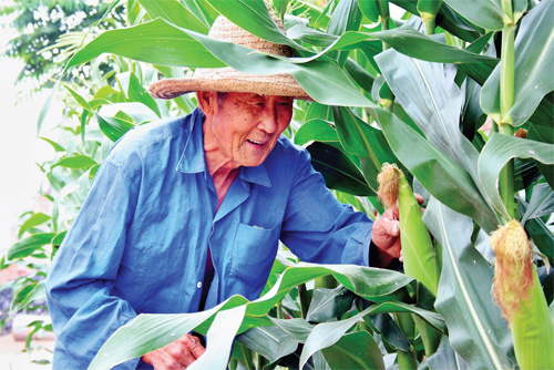 7 月4 日,原平市武彥村老農(nóng)看著長(zhǎng)勢(shì)喜人的玉米喜上眉梢:如今惠農(nóng)政策真是好,調(diào)動(dòng)了俺們的種田積極性,利用科技種的玉米,長(zhǎng)得好,結(jié)穗早,收入高,看著真開心。(趙春曉 攝)