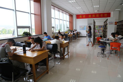 7月22日,一群孩子在靜樂縣圖書館閱讀少兒書籍。進入暑假,寬敞明亮的靜樂縣圖書館每天都有近百名讀者免費閱覽各種書籍,今年最大特點是青少年學生比較多。近年來,靜樂縣為給讀者提供舒適的閱讀環(huán)境,先后安裝了空調(diào),配備了飲水機等。(閆曉梅 攝)