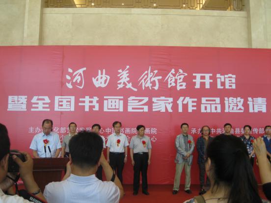 8月31日,河曲美術(shù)館開館暨全國(guó)書畫名家作品邀請(qǐng)展開幕儀式舉行。中國(guó)美術(shù)家協(xié)會(huì)主席劉大為題寫了館名。著名書畫家張旭光、專業(yè)畫家胡寶利專程從北京趕來(lái)祝賀。