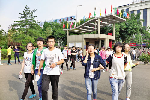 圖為6月6日下午5時(shí),忻州一中考點(diǎn)的考生們進(jìn)入校區(qū),確認(rèn)、熟悉考場環(huán)境。