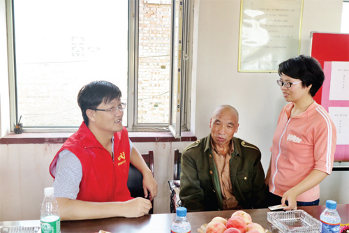 8月7日,“忻州愛心公益行動”團隊一行一百多人,穿著統(tǒng)一的紅馬甲,一大早就出發(fā),驅(qū)車來到了距忻州市區(qū)十幾公里的蘭村鄉(xiāng)晏村。剛進村委會大院,就看到了等候著的宿香玲一家以及鄉(xiāng)政府、村委會的工作人員?!瓣P(guān)愛貧困生,共筑大學(xué)夢”,紅色醒目的條幅傳遞出了大家此行的目的和心聲。此次,“忻州愛心公益行動”團隊不僅為貧困學(xué)生宿香玲一家?guī)砹松钣闷泛腿沼闷?,而且送來了資助宿香玲完成大學(xué)學(xué)業(yè)的善款3萬余元。當(dāng)天晏村村委會黨員干部們也主動牽頭,開展“兩學(xué)一做”先鋒行、黨員干部獻愛心活動,現(xiàn)場為宿香玲籌得善款930元。新希望學(xué)校代表也為宿香玲一家送來了米面油等生活用品以及1000元現(xiàn)金。