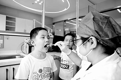 浙江嘉興經(jīng)開(kāi)區(qū)組織兒童牙齒義診活動(dòng)走進(jìn)嘉北街道暑托班。張娟攝/光明圖片
