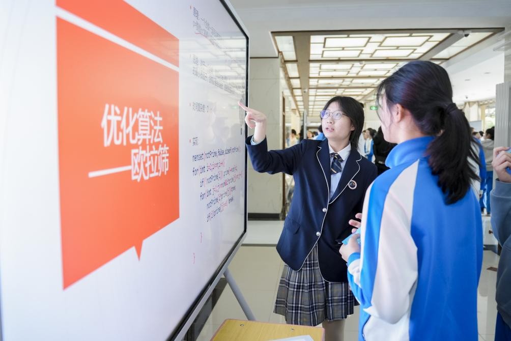 新華網(wǎng)北京3月17日電 國際數(shù)學(xué)日當(dāng)天,北京市海淀區(qū)教師進(jìn)修學(xué)校附屬實(shí)驗(yàn)學(xué)校開展了主題為“數(shù)海揚(yáng)帆智引航,數(shù)演萬物智創(chuàng)生”的數(shù)學(xué)節(jié)活動(dòng),共設(shè)置了“數(shù)海暢游”“數(shù)解科技“數(shù)論古今”“數(shù)模筑夢”“數(shù)韻流光”五大主題板塊。