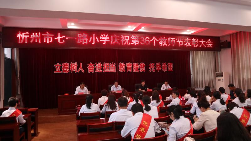 金風(fēng)送爽,涼霜驚秋。伴隨著時光款款的腳步,相攜著歲月累累的果實,為傳承尊師重教的文明火種,增強(qiáng)教師的光榮感、責(zé)任感、使命感,培養(yǎng)學(xué)生尊師重教的良好品德,在第36個教師節(jié)即將來臨之際,9月9日下午,忻州市七一路小學(xué)舉行了“立德樹人奮進(jìn)擔(dān)當(dāng),教育脫貧托舉希望”第36個教師節(jié)表彰活動,會議由郭彥君副校長主持,全體教職工參加了表彰大會。