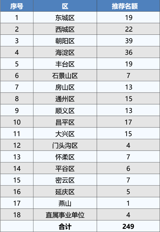 全市擬評選特級教師207名左右。 2020年北京市特級教師推薦名額分配表↓↓