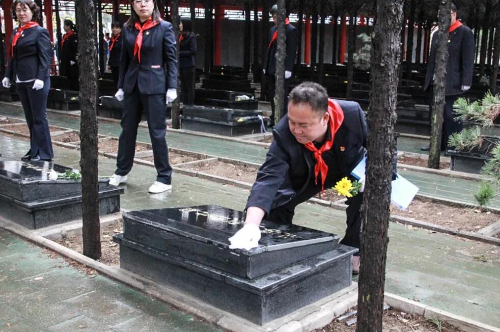 在祭奠活動(dòng)中,同學(xué)們跟隨盧俊芬老師一道學(xué)習(xí)了趙正午烈士的革命故事,為烈士陵園的先烈們敬獻(xiàn)花籃、默哀,并細(xì)致的擦拭了每座烈士墓碑,以此表達(dá)對(duì)先烈們的無(wú)限哀思。
