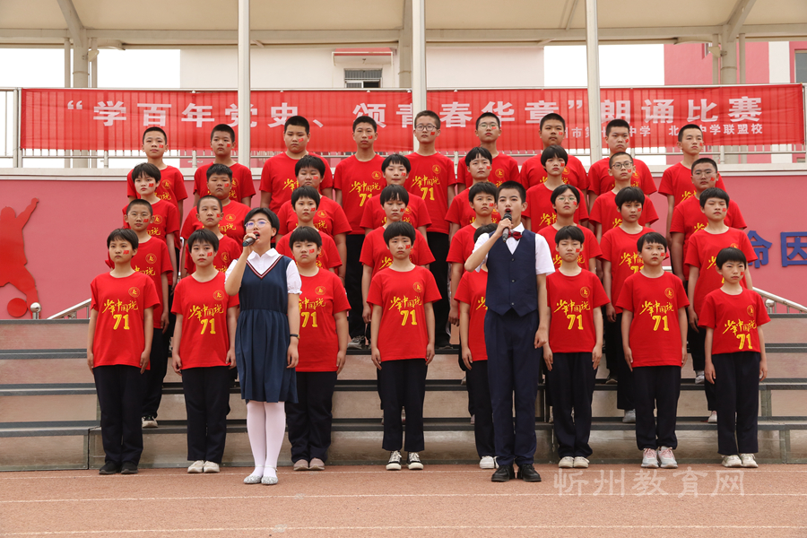 比賽現(xiàn)場(chǎng),同學(xué)們以飽滿的熱情表達(dá)了對(duì)革命先烈的崇敬,對(duì)祖國(guó)的熱愛以及對(duì)未來(lái)理想生活的展望,為在場(chǎng)的師生們呈現(xiàn)了一場(chǎng)精彩的朗誦表演。同學(xué)們創(chuàng)新朗誦形式,比賽過(guò)程中增加武術(shù)、歌唱、舞蹈,形式多樣,增加了比賽的觀賞性。北方中學(xué)聯(lián)盟校區(qū)初二全體教師同臺(tái)演出,為全場(chǎng)觀眾奉上了一場(chǎng)精彩紛呈的文化視覺(jué)盛宴。全體朗誦者用真摯的情感共同匯成了弘揚(yáng)時(shí)代、謳歌先進(jìn)的動(dòng)人旋律,贏得了臺(tái)下學(xué)生的熱烈掌聲和一致好評(píng)。