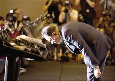 5月2日,在韓國(guó)首爾,利潔時(shí)韓國(guó)子公司負(fù)責(zé)人阿塔爾·薩夫達(dá)爾在記者會(huì)上鞠躬道歉。 英國(guó)日用品公司利潔時(shí)韓國(guó)子公司2日在首爾召開記者會(huì),就“加濕器殺菌劑致死事件”向韓國(guó)國(guó)民道歉并提出賠償方案。2011年韓國(guó)有多人因罹患不明原因的肺病而死亡,一度在韓國(guó)社會(huì)引發(fā)恐慌。韓國(guó)保健福祉部疾病管理本部經(jīng)調(diào)查后認(rèn)定,加濕器殺菌劑是導(dǎo)致不明肺病的元兇。 新華社/美聯(lián) (責(zé)任編輯:盧相?。?br /> |