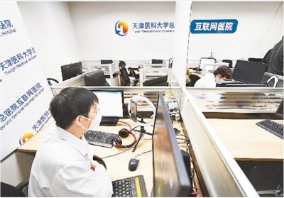 天津醫(yī)科大學(xué)總醫(yī)院互聯(lián)網(wǎng)醫(yī)院開通“互聯(lián)網(wǎng)門診”服務(wù),醫(yī)生用手機(jī)視頻進(jìn)行線上問診。新華社記者 李 然攝