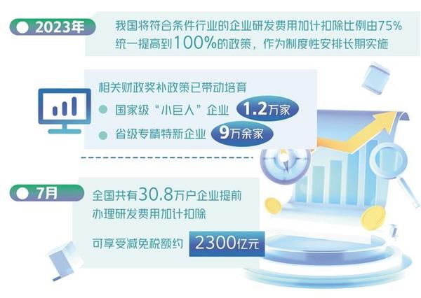 今年3月,國家將符合條件行業(yè)的企業(yè)研發(fā)費(fèi)用加計(jì)扣除比例由75%統(tǒng)一提高到100%的政策,作為制度性安排長期實(shí)施。在此基礎(chǔ)上,國家稅務(wù)總局會(huì)同財(cái)政部按照國務(wù)院決策部署,在原有10月份企業(yè)所得稅預(yù)繳申報(bào)和年度匯算清繳兩個(gè)時(shí)段享受研發(fā)費(fèi)用加計(jì)扣除政策的基礎(chǔ)上,再新增7月預(yù)繳申報(bào)期作為政策享受時(shí)點(diǎn),幫助企業(yè)提前享惠。