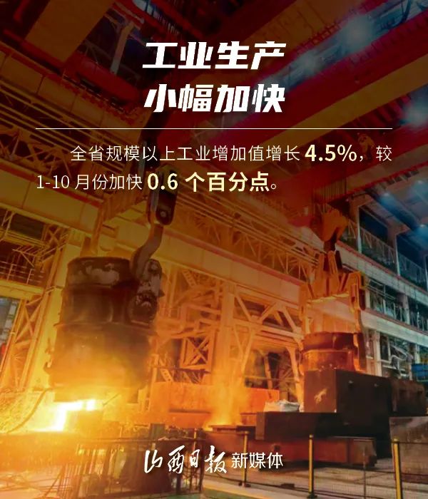 12月20日,省統(tǒng)計局發(fā)布1至11月份山西經濟運行情況。1至11月份,山西扎實推動高質量發(fā)展,穩(wěn)增長政策效應持續(xù)釋放,主要指標增勢良好,工業(yè)生產小幅加快,消費市場穩(wěn)步復蘇,就業(yè)物價總體平穩(wěn),經濟運行穩(wěn)中向好。一組海報了解1至11月山西經濟成績單。
