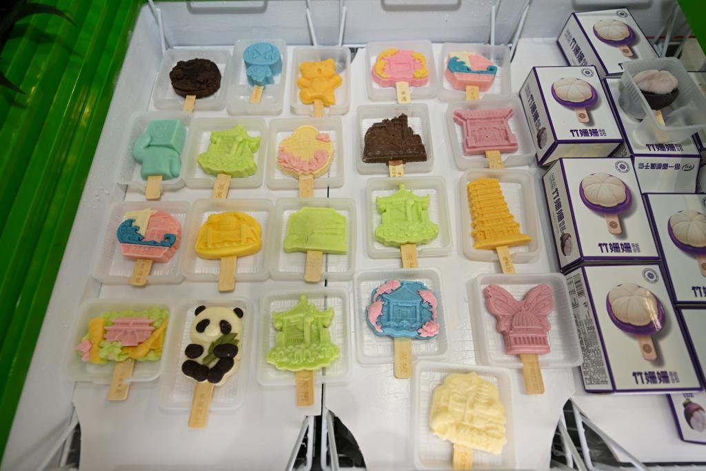 9月26日,在博覽會(huì)現(xiàn)場(chǎng)展出的部分文創(chuàng)冰淇淋產(chǎn)品。新華社記者 孫凡越 攝