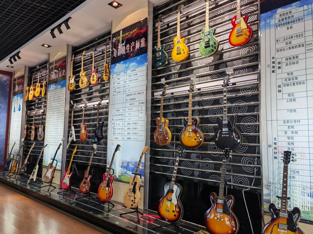在鄌郚樂器產業(yè)發(fā)展中心,各式電吉他陳列其中。新華社記者 王志 攝