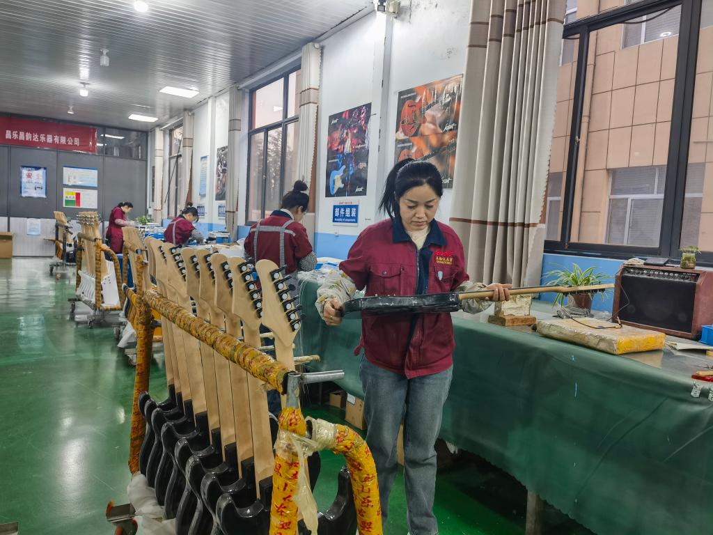 今天的鄌郚鎮(zhèn),總人口不過8萬,卻有5000多人從事樂器產業(yè),年人均工資收入8萬元左右。電吉他等樂器生產成為當地居民最重要的收入來源。