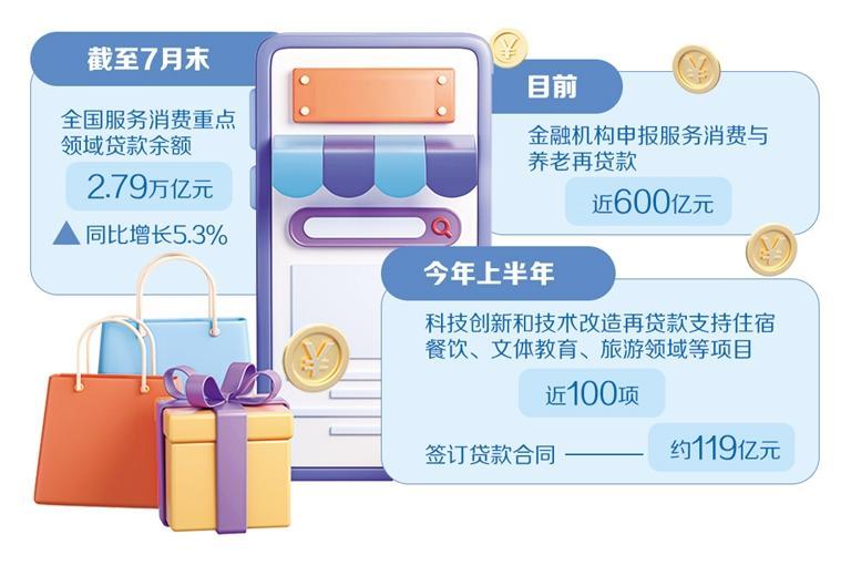 比如,央行設立兩個結構性貨幣政策工具。5月9日,中國人民銀行印發(fā)《關于設立服務消費與養(yǎng)老再貸款有關事宜的通知》,專門設立5000億元服務消費與養(yǎng)老再貸款,引導金融機構加大對住宿餐飲、文體娛樂、教育、居民服務、旅游等服務消費重點領域和養(yǎng)老產業(yè)的信貸投放。目前,金融機構申報服務消費與養(yǎng)老再貸款近600億元,涉及經營主體近4000家,貸款5700多筆。