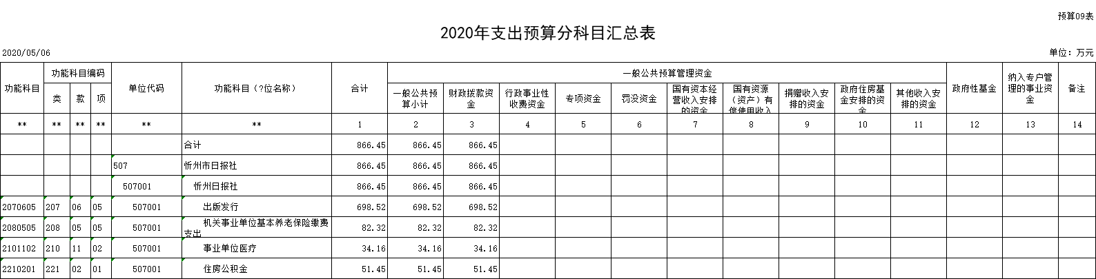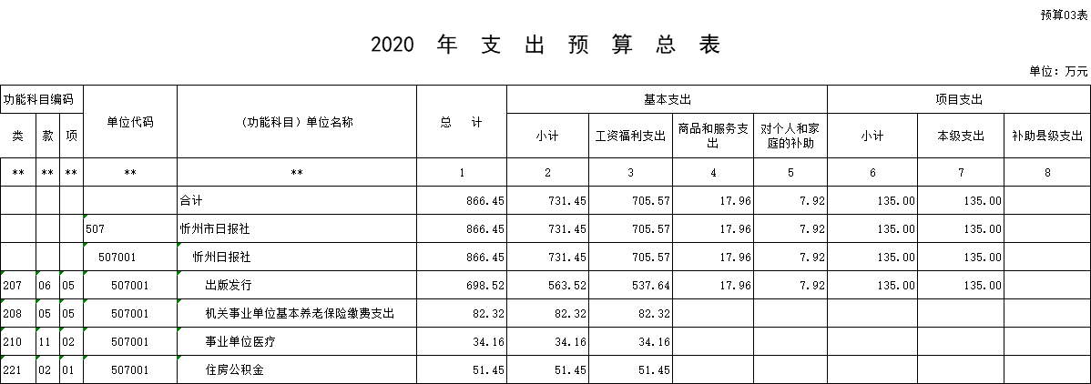 忻州日?qǐng)?bào)社2020年度部門預(yù)算及“三公”經(jīng)費(fèi)預(yù)算公開情況