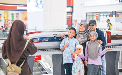 日前,在印度尼西亞雅加達(dá),乘客在雅萬高鐵哈利姆站候車大廳與雅萬高鐵高速動車組模型合影。新華社記者 徐 欽攝