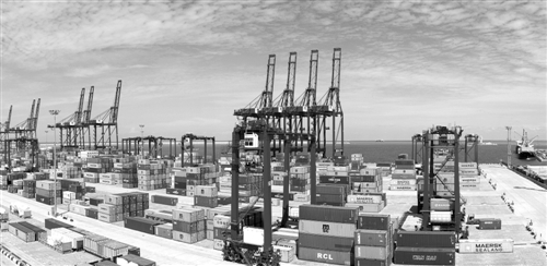 科倫坡南港集裝箱碼頭是中國(guó)和斯里蘭卡共建“21世紀(jì)海上絲綢之路”務(wù)實(shí)對(duì)接標(biāo)桿性項(xiàng)目,是南亞最深的集裝箱碼頭。據(jù)測(cè)算,南港碼頭項(xiàng)目在35年合同期直接稅賦將達(dá)18億美元。同時(shí),在建設(shè)和經(jīng)營(yíng)期間可分別為當(dāng)?shù)貏?chuàng)造3000個(gè)和7500個(gè)直接就業(yè)機(jī)會(huì)。圖為科倫坡南港集裝箱碼頭。 新華社發(fā)