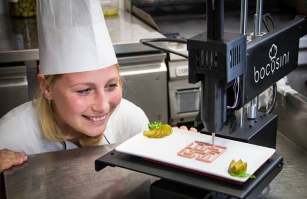 一家號稱全3D打印的餐館將于7月晚些時候在英國倫敦開張,不僅所有食物是3D“打印”而成,連餐桌、餐椅、燈具和餐具都出自這種技術(shù)。這家名為“食物墨水”的餐館將提供9種3D打印菜肴,并在網(wǎng)上直播“烹飪”過程。除了吃飯,顧客還可以在這家高技術(shù)氛圍濃厚的餐館體驗虛擬現(xiàn)實技術(shù),欣賞電腦創(chuàng)作的音樂。餐館方面沒有透露3D打印菜肴的細節(jié),只說食物主要原料將呈醬狀,打印菜肴的過程類似面點師用擠花袋把奶油擠在蛋糕上做造型?!笆澄锬比司M250英鎊(約合2220元人民幣)的高價位招來質(zhì)疑:誰會花這么多錢吃一堆擠在塑料餐具里的漿糊?