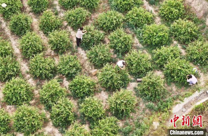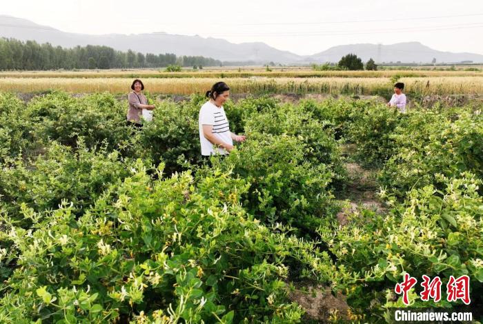 “三夏”大忙時(shí)節(jié),呂梁山脈姑射山下,山西省運(yùn)城市新絳縣澤掌鎮(zhèn)喬溝頭、吳嶺莊、光村等村,千畝金銀花喜獲豐收,花農(nóng)們正采摘搶收。近年來(lái),當(dāng)?shù)匾浴盎ā睘椤懊健保掷m(xù)加大果、藥等產(chǎn)業(yè)發(fā)展,成為鄉(xiāng)村振興“新動(dòng)力”。
